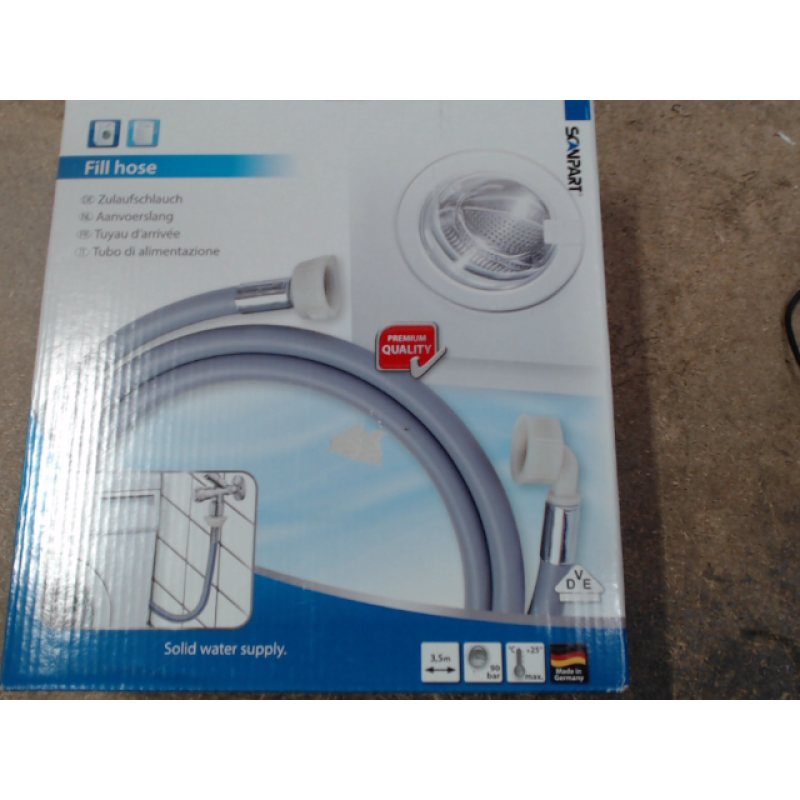 Deze aanvoerslang van Scanpart is 3,5 meter lang en is voorzien van een 3/4" wartelmoeraansluiting. Hij is geschikt om water naar uw vaatwasser of wasmachine te voeren. De maximale watertemperatuur die deze aanvoerslang kan verdragen, is 25°C bij maximaal 90 bar waterdruk.
