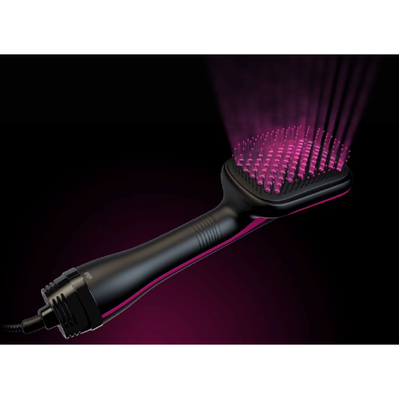 De RVDR5212E2 heteluchtborstel van Revlon maakt je haar zacht en glad. Met de RVDR5212E2 borstel en style je je haar tegelijkertijd. Dankzij de ionische technologie creëer je een glad en pluisvrij resultaat zonder statisch haar. Verder heeft de borstel een keramische coating, waardoor warmte gelijkmatig verdeeld wordt voor snelle en goede resultaten. De borstel heeft 2 warmtestanden, waardoor je de juiste warmtestand uitkiest voor jouw haartype. Verder is hij gemakkelijk te gebruiken dankzij het ergonomisch ontwerp en het lichte gewicht, waardoor je arm minder snel moe wordt. Verder heeft de RVDR5212E2 een snoerlengte van 2.5 meter en een maximaal vermogen van 800 Watt.