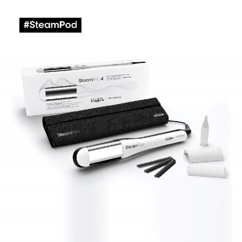 Stijl en krul jouw haar moeiteloos met de L’Óreal SteamPod Professionnel 4.0. De SteamPod heeft brede, keramische platen en komt tot 30% dichter bij de aanzet, waardoor jouw lokken extra strak en glad zijn. Dankzij de nieuwe curl locking guide die zachtjes verwarmt tot 100°C en een dunner en ronder bovengedeelte heeft, creëer je veerkrachtigere en meer gedefinieerde krullen. De SteamPodis sneller, zorgt voor een gladder resultaat en apparaat heeft ook nog eens een ergonomisch design, waardoor je met extra comfort jouw prachtige lokken in vorm brengt. De L’Óreal SteamPod Professionnel 4.0. wordt geleverd met een set van 3 stoom-optimaliserende kammen op maat, zodat de stoom op elk haartype gelijkmatig wordt verdeeld. In de verpakking zijn ook 2 thermo-beschermingskappen voor veilig steilen en een hittebestendig reispouch aanwezig.