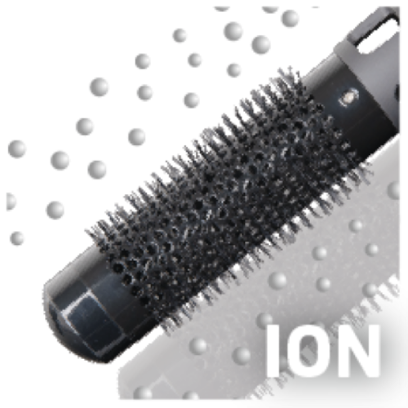 De KHA 10524 is een föhn en stylingtool in één; handig als je ‘s ochtends niet veel tijd hebt. Dankzij de keramische coating warmt de borstel gelijkmatig op en raakt je haar minder snel beschadigd. De föhnborstel glijdt zacht en soepel door zowel nat als droog haar en verspreidt een constante warme luchtstroom. Je stylet je haar niet alleen, je verzorgt het ook dankzij ionische technologie. Negatie-ve ionen maken jouw haar pluisvrij, herstellen de vochtba-lans en zorgen voor extra glans. Om op jouw manier te stylen, kies je uit twee warmtestanden en een koelstand.