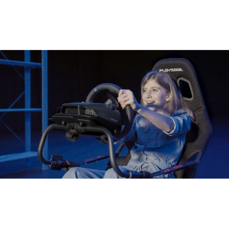 Kruip écht achter het stuur van een raceauto in jouw favoriete racegame. Met dit compacte model zet jij jouw eerste stappen in de wereld van realistisch racen. De robuuste cockpit is ontworpen met oog voor detail en biedt de stabiliteit die je nodig hebt om plankgas te kunnen geven op de straights en elke bocht goed in te sturen. De zwarte bekleding van ActiFit-materiaal houdt je koel bij zelfs de meest intense gamesessies en je kiest zelf tussen de GT-positie, een rallypositie en een liggende F1-positie. Voel de force feedback van je stuur bij elke bocht en geniet van een realistische ervaring.