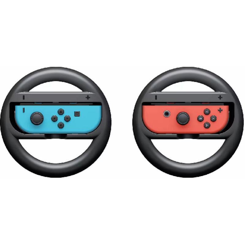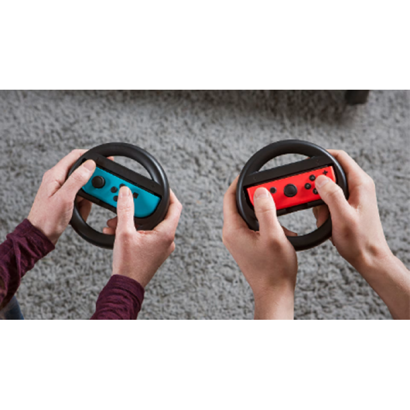Met de Nintendo Switch Joy-Con-stuurset heb je gelijk twee stuurwieltjes tot je beschikking. Je klikt jouw Joy-Cons in deze stuurtjes om gemakkelijker gebruik te kunnen maken van de motion controls van de Joy-Cons als je bijvoorbeeld Mario Kart gaat spelen.