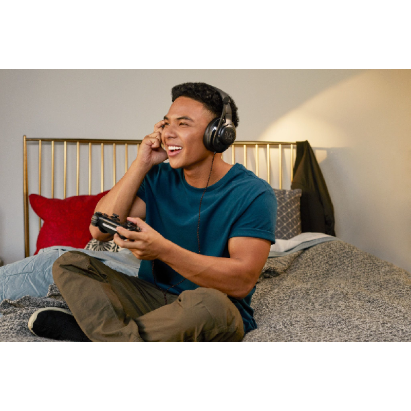 Games klinken intenser met de JBL Quantum 200. Deze bekabelde over-ear-headset werkt met bijna alle systemen en biedt kraakheldere audio, wat je ook speelt. Let the games begin!