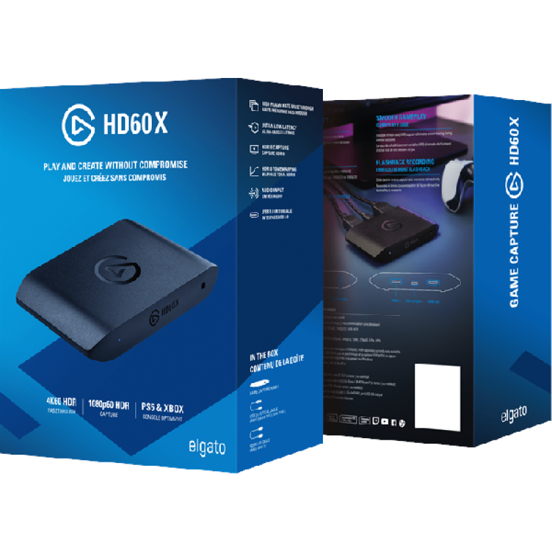Met Elgato HD60 X USB Capture Card neem jij jouw gameplay in hoge resolutie op via je PC, PlayStation of Xbox. De kaart maakt verbinding met je console en stuurt onbewerkte video in realtime naar zowel je gamescherm als je computer, zodat je de vrijheid hebt om te streamen, op te nemen en te creeren zoals jij dat wil.