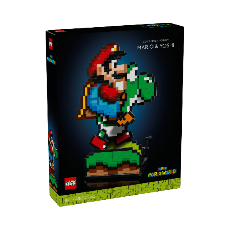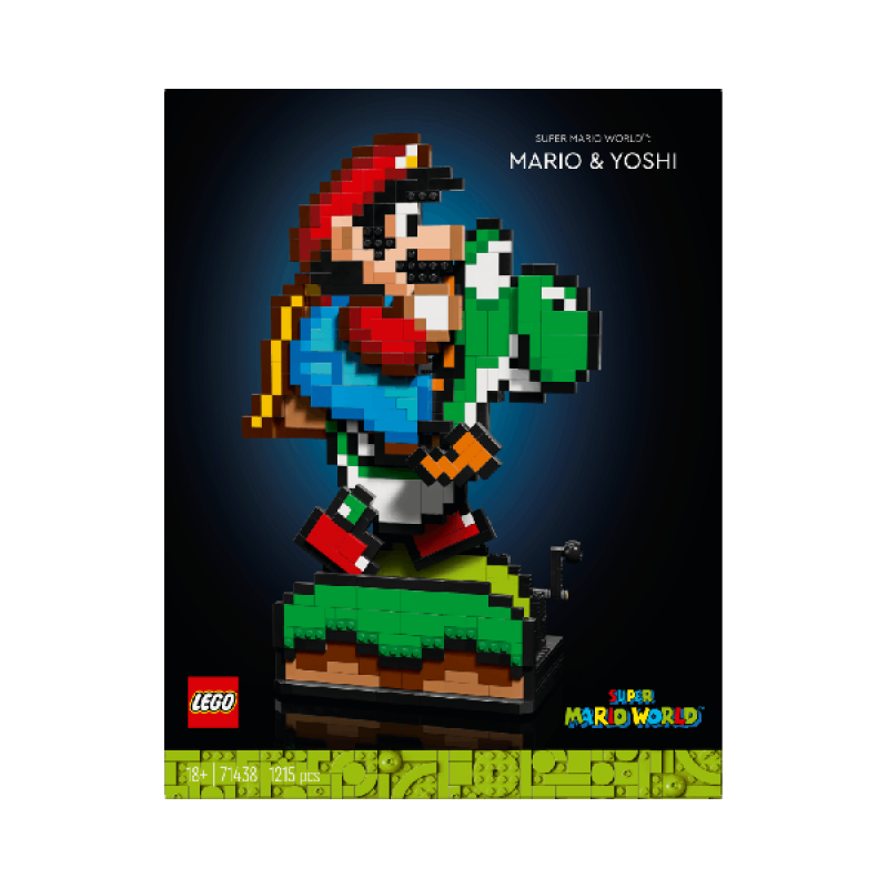 Haal een stukje Nintendo-nostalgie in huis met de LEGO Super Mario Mario en Yoshi Lego-bouwset. Deze imiteert de pixel artstijl uit het klassieke Super Mario World videospel. Draai aan de hendel om Yoshi te laten rennen met Mario op zijn rug en gebruik de draaiknop om te zien hoe Yoshi zijn tong uitsteekt.