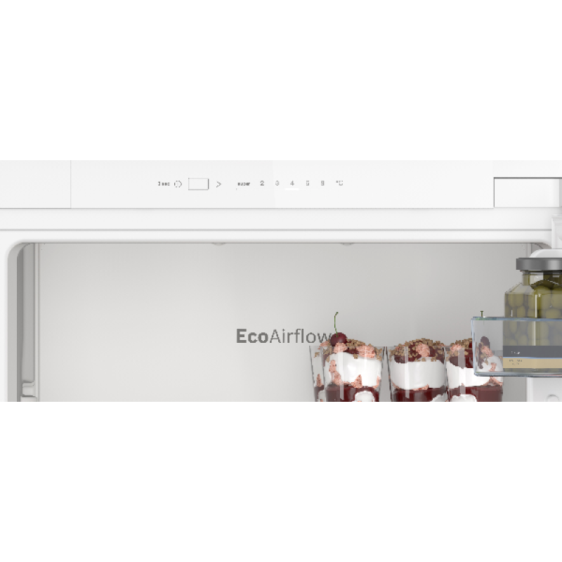 Met Eco Airflow blijft de luchtvochtigheid en temperatuur in de hele koelkast constant. Hierdoor blijven je producten langer vers. De Bosch KIR21NSE0 is ook voorzien van een SuperKoelen-functie. Activeer deze functie vóór het boodschappen doen, de temperatuur daalt tijdelijk, zodat nieuwe producten sneller gekoeld worden. Zo voorkom je temperatuurschommelingen en blijft alles langer houdbaar. Deze slimme technologieën zorgen niet alleen voor versheid, maar ook voor efficiënt energiegebruik en minder voedselverspilling.