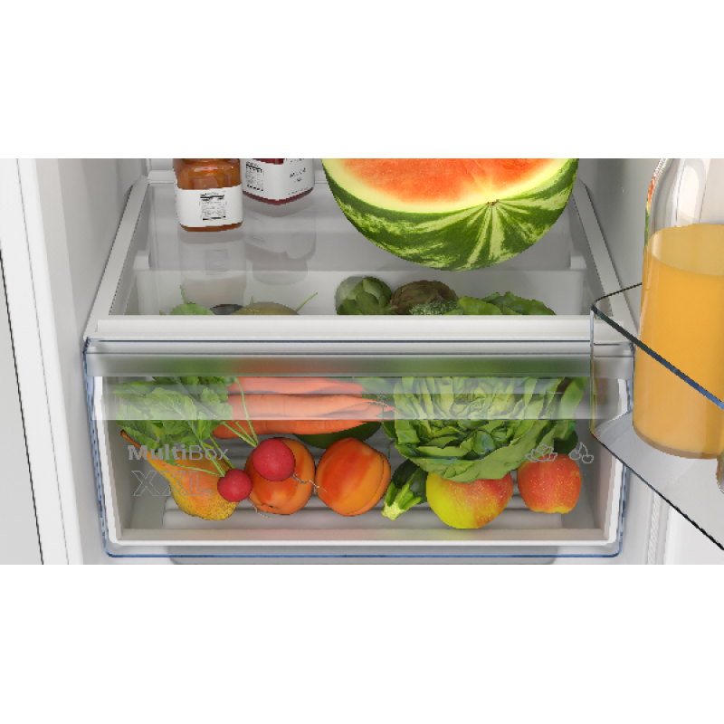 De Bosch KIR21NSE0 combineert Duitse degelijkheid met een praktische indeling. De ruime MultiBox XXL-lade houdt groenten en fruit overzichtelijk en vers. Dankzij 3 draagplateaus, waarvan 2 in hoogte verstelbaar, en 2 deurvakken kun je de koelkast flexibel inrichten. Alle plateaus zijn van sterk veiligheidsglas, wat barsten en breuken voorkomt. Zo blijft de koelkast lang mooi. Deze koelkast biedt dus niet alleen ruimte, maar ook een solide constructie voor langdurig gebruik.