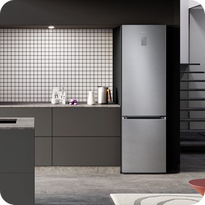 Maak je droomkeuken compleet met de Samsung RB34C602CB1EF. Deze ruime koel-vriescombinatie springt direct in het oog door zijn matzwarte design, maar straalt pas echt aan de binnenkant. Dankzij de flinterdunne maar toch zeer efficiënte isolatie van SpaceMax is hij veel ruimer dan je zou verwachten. De koude lucht wordt doeltreffend door de hele koelkast verdeeld met All Around Cooling, terwijl No Frost ervoor zorgt dat er uit die kou geen ijs kan ontstaan. Zeg dus maar dag tegen ontdooien. Versproducten bewaar je in de Humidity Fresh-lade, die jou zelf de luchtvochtigheid laat instellen. Wil je meer uit deze koel-vriescombi van Samsung halen? Koppel hem dan met de SmartThings-app voor nog veel meer mogelijkheden.
