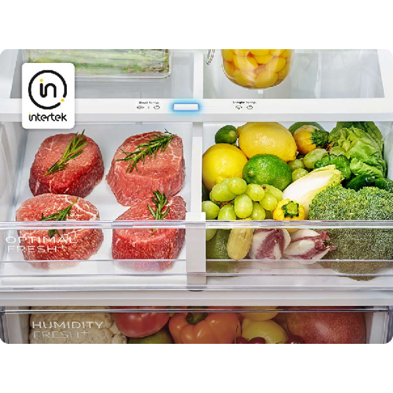 Met de Samsung RB38C7B5AB1/EF koel-vriescombinatie heb jij ruimte voor al jouw levensmiddelen. Dit vrijstaande model heeft een groot koelgedeelte met een inhoud van 273 liter, verdeeld over 4 koelschappen, een flessenhouder en 4 deurvakken voor bijvoorbeeld drinkflessen. Tevens heeft het apparaat 2 koellades voor versproducten: een OptimalFresh-lade voor vlees-, vis- en andere versproducten, en een unieke HumidityFresh-lade waarvan je zelf de luchtvochtigheid instelt. Zo blijft alles veel langer vers! Het vriesgedeelte bevindt zich onder het koelgedeelte, bestaat uit 3 ruime vriesvakken en heeft een capaciteit van 114 liter. Het apparaat wordt aangedreven door een krachtige inverter-motor, die niet alleen minder lawaai maakt, maar ook minder energie verbruikt. Dankzij de snelkoel- en snelvriesfuncties worden nieuwe boodschappen bovendien razendsnel gekoeld of ingevroren. Hierdoor blijven voedingsstoffen en smaak beter behouden en hoeft de Samsung minder hard te werken. Ontdooien hoeft niet meer, want met NoFrost doet deze koel-vriescombinatie dat helemaal zelf. Van ijsvorming heb jij dus geen last. Bovendien is deze koel-vriescombinatie via wifi te verbinden met de Smartthings-app. Hierdoor profiteer je van diverse extra functies, zoals de AI Energy Mode waarmee je nauwkeurig het energieverbruik in de gaten houdt. Deze modus analyseert jouw gebruikspatroon, maakt een schatting van je verbruik en helpt je om energie te besparen.