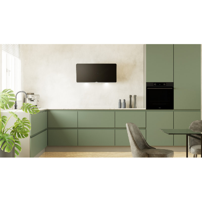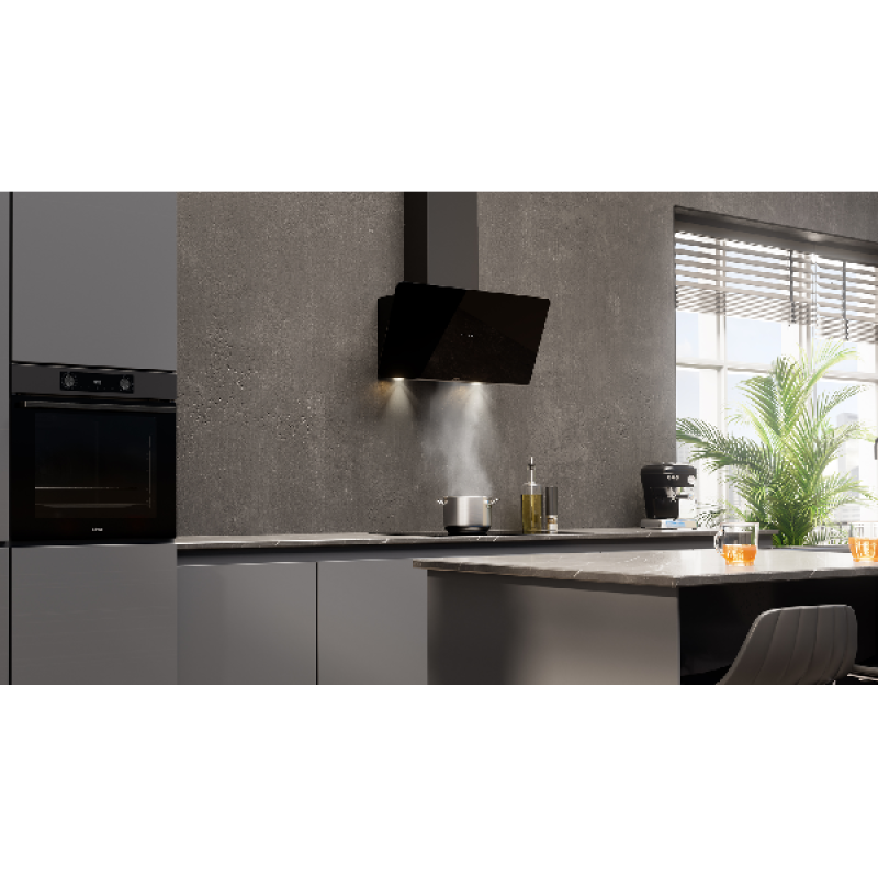 Deze afzuigkap AD690ZT van ETNA zal met zijn opvallend diagonale design en zwart afwerking niet ongemerkt hangen in je keuken. Met een breedte van 90 cm, hangt hij perfect boven je kookplaat om alles goed te kunnen wegzuigen tijdens het koken. Hij is efficiënt en zuigt tot 770 m3/h wat zorgt dat zelfs grotere keukens in korte tijd weer helemaal fris ruiken. De afzuigkap is eenvoudig te bedienen dankzij de verlichte touch-control bedieningsknoppen waarmee je de juiste snelheden inclusief intensiefstand kan kiezen. Voor de meest efficiënte werking is de afzuigkap voorzien van drie aluminium vetfilters die in de vaatwasser mogen zo houdt je gemakkelijk schoon.