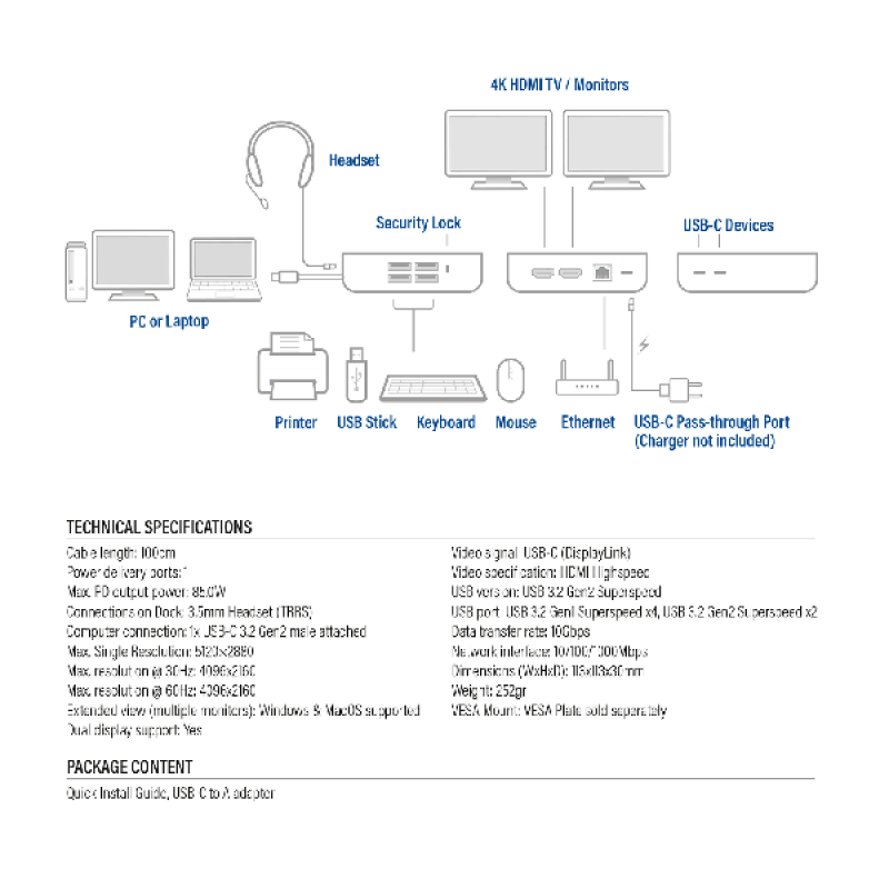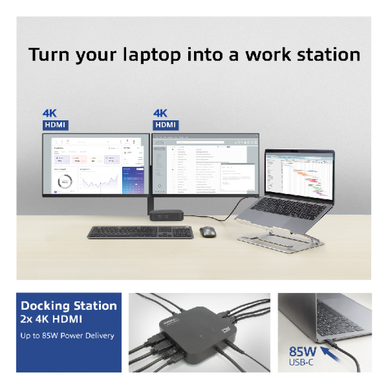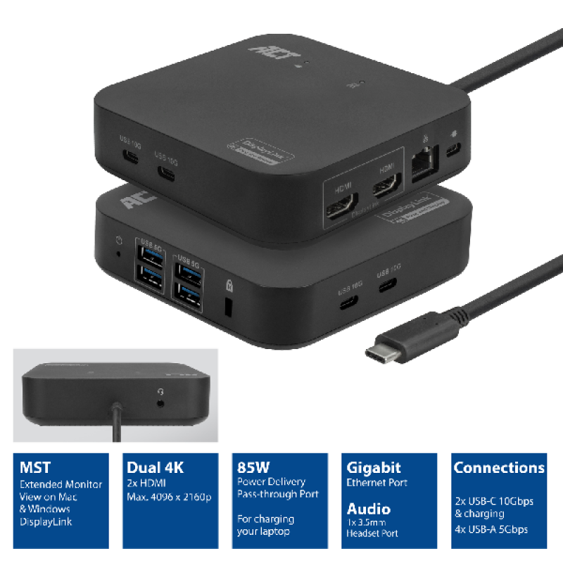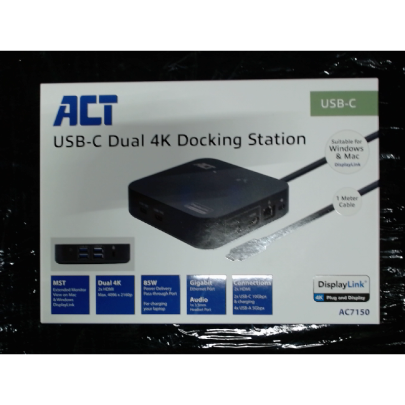 De ACT AC7150 Usb-C 2X4K Dl Docking Port is een veelzijdige dockingstation. Sluit moeiteloos meerdere apparaten aan en geniet van een naadloze gebruikerservaring.