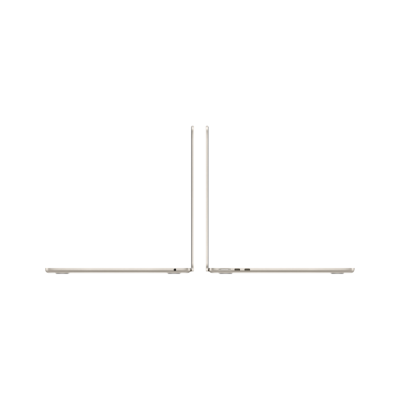 De MacBook Air is voorzien van twee Thunderbolt-poorten, een mini jack-aansluiting, wifi 6E, Bluetooth 5.3 en een MagSafe-oplaadpoort. Je kan tot twee externe displays aansluiten wanneer de laptop is dichtgeklapt. De MacBook Air is ook uitgerust met het Magic Keyboard met achtergrondverlichting en Touch ID voor veilig ontgrendelen en betalen.