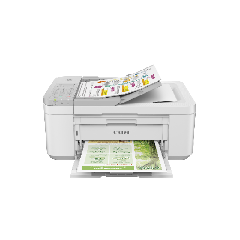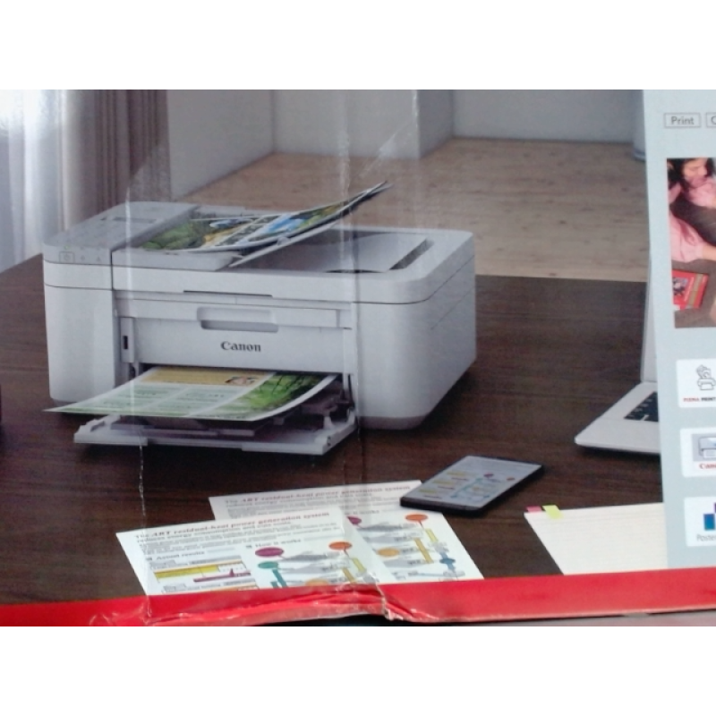 De witte Canon PIXMA TR4755I All-In-One-inkjetprinter is elegant en gebruiksvriendelijk. Dankzij het compacte design vind je er eenvoudig een plekje op een klein bureau of plank, waar hij altijd voor je klaarstaat. De printer werkt zowel bekabeld als draadloos op afstand dankzij de Canon-app. De PIXMA TR4755I print, kopieert en scant in zwart-wit en kleur, waardoor het ideaal is voor thuisgebruik. Ja plaatst tot 100 vellen papier van formaten, gewichten en stevigheid in de papierlade aan de voorkant en tot 20 vellen fotopapier van 13 x 18 cm in de fotopapierlade. De printer levert uitstekend resultaat met een afdrukkresolutie van 4.800x 1.200 dpi en kan tot 8,8 pagina's per minuut afdrukken in zwart-wit. Met dit kleine apparaat in huis print jij alles wat je nodig hebt.