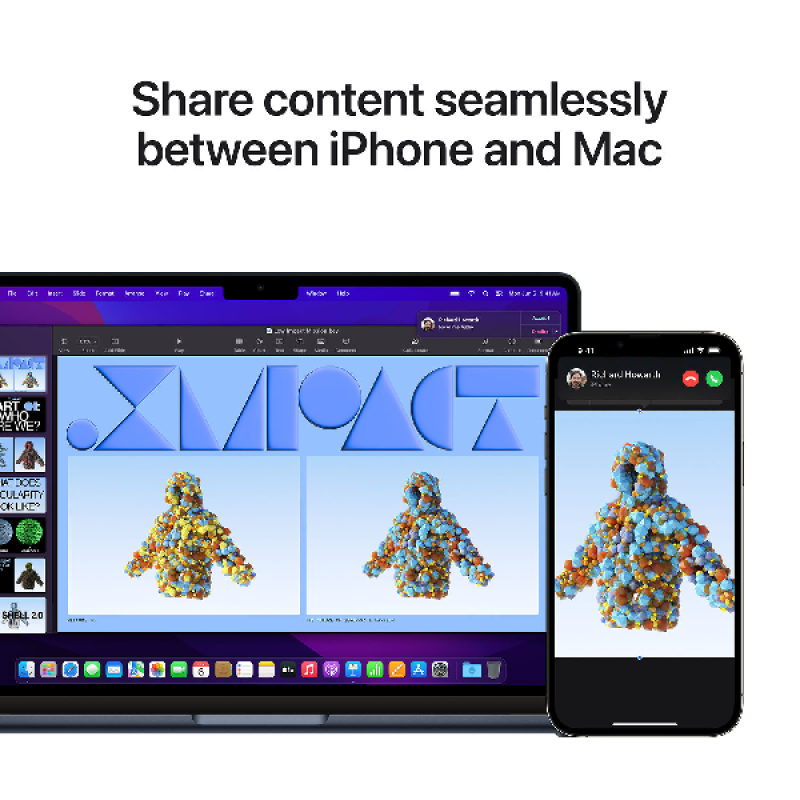 Aan alles is gedacht. Het Magic Keyboard met achtergrondverlichting en Touch ID is zeer veilig voor het ontgrendelen en betalen met je MacBook. Ook over de connectiviteit hoef jij je geen zorgen te maken. Met een MagSafe 3-poort, twee Thunderbolt-poorten en mini-jack-aansluiting sluit jij alles aan wat nodig is om je MacBook op te laden en om andere Apple-accessoires te gebruiken. En dankzij Wifi 6 geniet je van een snelle draadloze verbinding. Met macOS Ventura heb je allerlei handige manieren om meer gedaan krijgen, te delen en samen te werken, en het werkt ook nog eens naadloos met iPhone en iPad.
