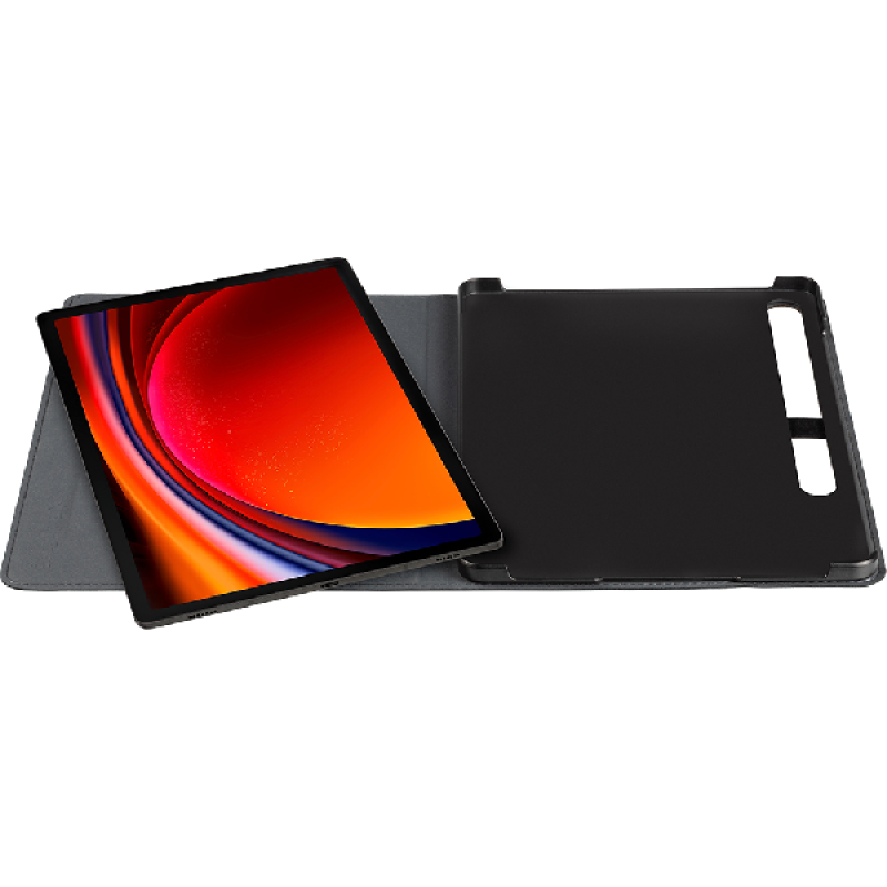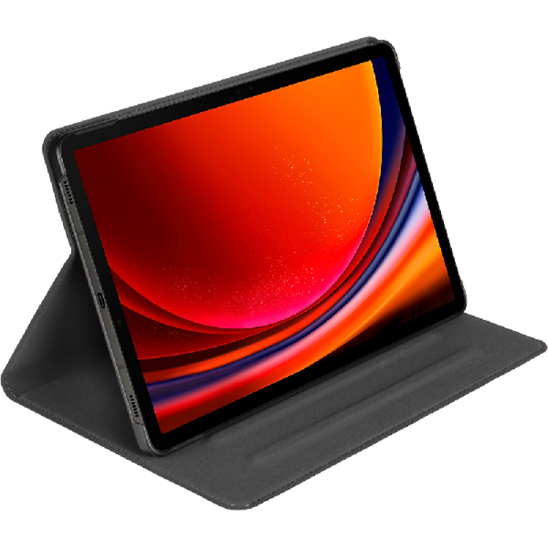 Stijlvolle, stevige bescherming voor je Samsung Galaxy Tab S9 met de Samsung Tab S9 EasyClick Zwart. Neem je tablet veilig mee naar afspraken, werk of op vakantie. Dankzij de handige vouwbare achterkant kun je de beschermhoes tevens als steun gebruiken om hem rechtop te zetten.