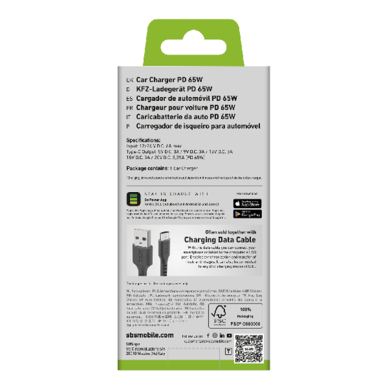 SBS Car Charger USB-C 65W Autolader