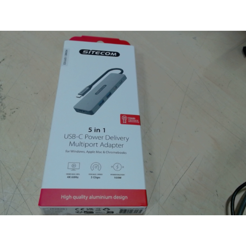 Met deze 5-in-1 USB-C Multiport-adapter van Sitecom voeg je in één klap 5 aansluitingen toe aan je laptop, terwijl je maar een enkele USB-C-aansluiting in beslag neemt. Je krijgt toegang tot de volgende aansluitingen: USB-C met Power Delivery (100 W, geen data- of video-overdracht), HDMI 2.0 (4K60), USB-C 3.2 (Gen 1: 5 Gbps / 7,5W), 2x USB-A 3.0 (5 Gbps/7,5W).