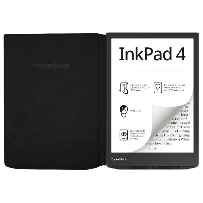 De lichte en stijlvolle flipcover biedt betrouwbare bescherming voor het scherm van jouw PocketBook-apparaat. Het wordt rechtstreeks op de achterkant van de e-reader aangesloten met behulp van het cover catch-systeem, maar bedekt het niet volledig. Dit maakt de beschermhoes tot een absoluut vlieggewicht. De flipcover ondersteunt de sleepcover-functie van de e-reader en zorgt ervoor dat de batterij van je apparaat langer meegaat voordat deze moet worden opgeladen. Wanneer de beschermhoes gesloten wordt, wordt het apparaat automatisch in de slaapmodus gezet; bij het openen wordt de e-reader opnieuw geactiveerd.