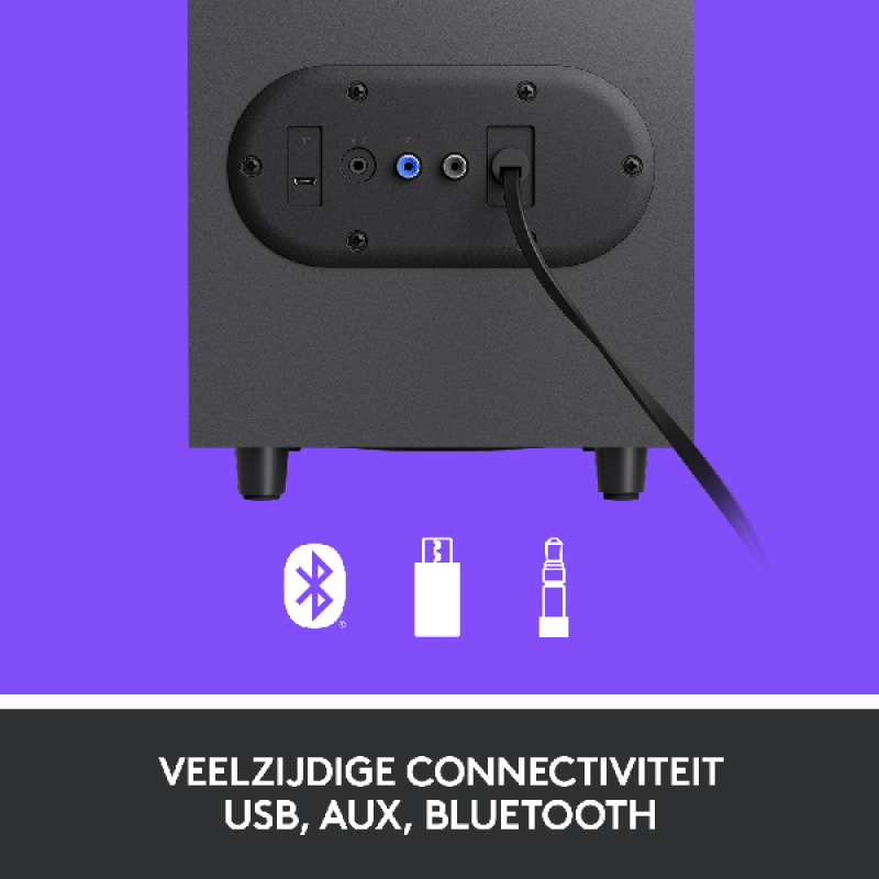 Kies voor een geweldig geluid op je pc met de Logitech Z407 Bluetooth-computerspeakers. Het deskundig afgestemde 2.1-speakersysteem levert een piekvermogen van 80 W en 40 W RMS. Zorg voor meeslepend geluid met de down-firing subwoofer die een diep daverend geluidseffect geeft, terwijl de digitale signaalverwerking heldere tonen levert in het hele geluidsspectrum. Deze speaker heeft een draadloos bereik van 30 meter. Stijlvolle, ovaalvormige satellietspeakers in horizontale of verticale stand. Bepaal zelf hoe ze het best in je werkruimte passen. Bedien alles met de Bluetooth-draaiknop voor draadloze bediening. Zonder van de bank op te hoeven staan kun je de bass en het volume instellen en nummers overslaan en pauzeren. Maak verbinding via Bluetooth, USB-A of 3,5mm-ingangen.