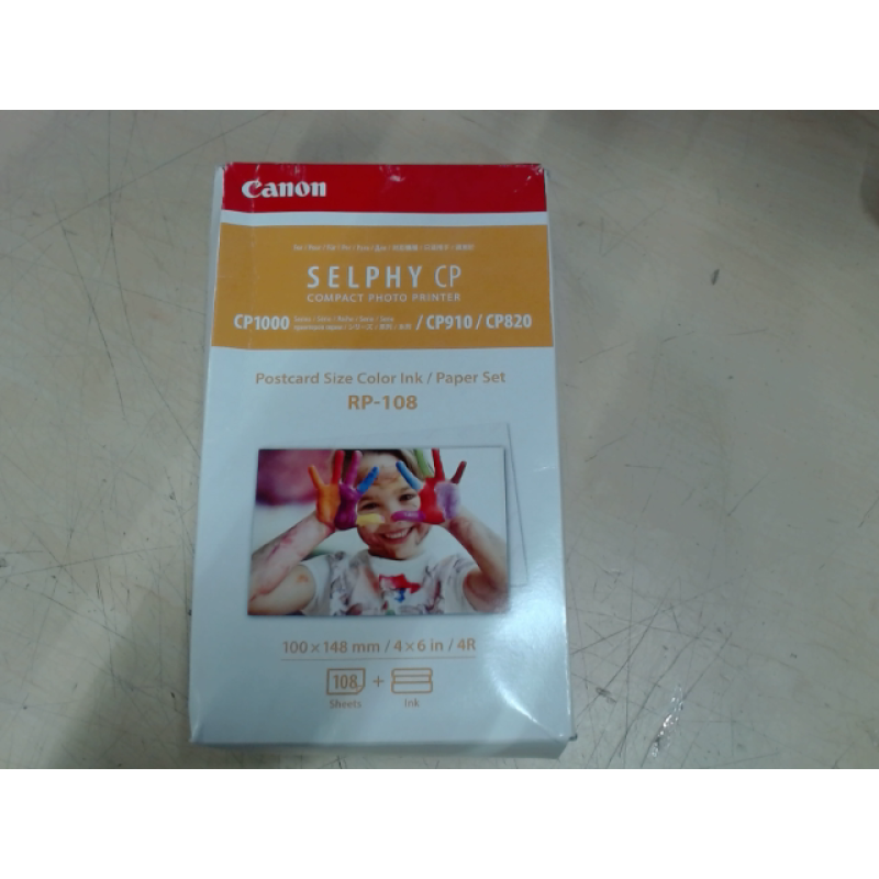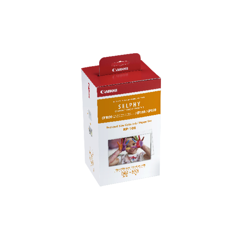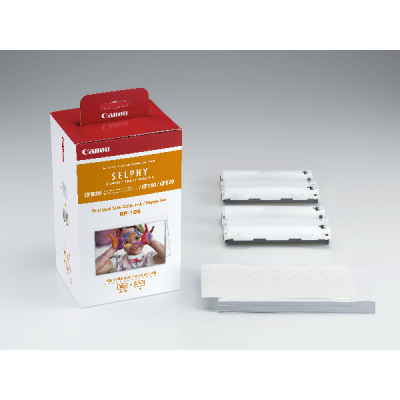 De Canon RP-108 set bevat twee kleuren inkt en 108 vellen papier van briefkaartformaat. Het papier is 100 x 148 mm en daarmee ideaal voor het plakken in familiealbums of fotolijsten. Deze Canon-set is geschikt voor de Canon Selphy-printers.