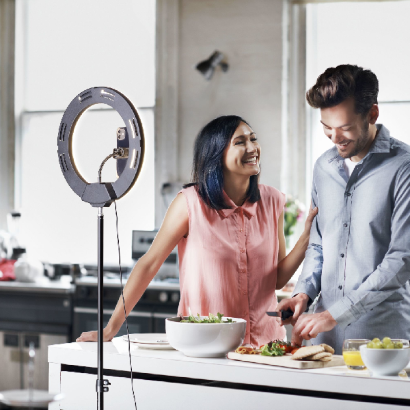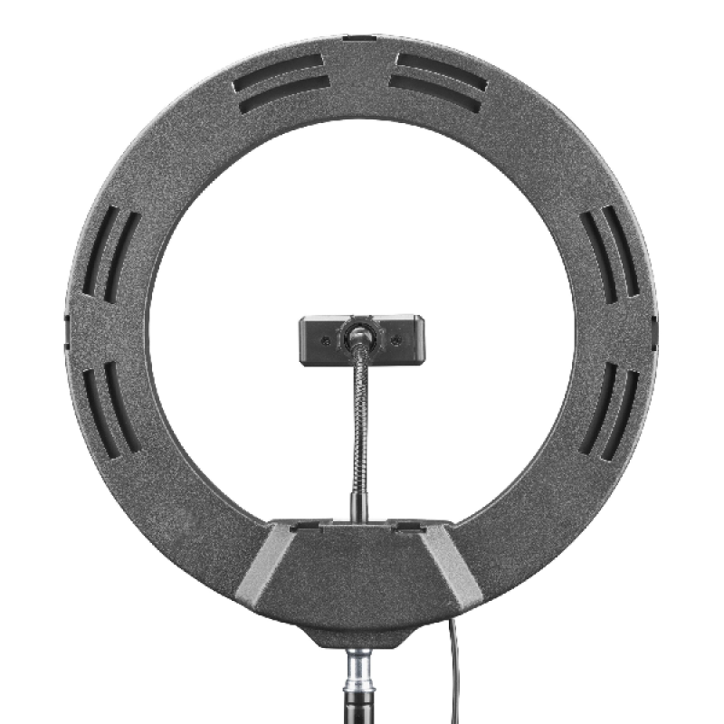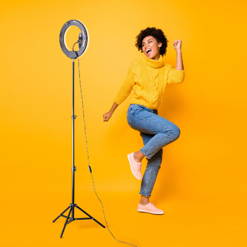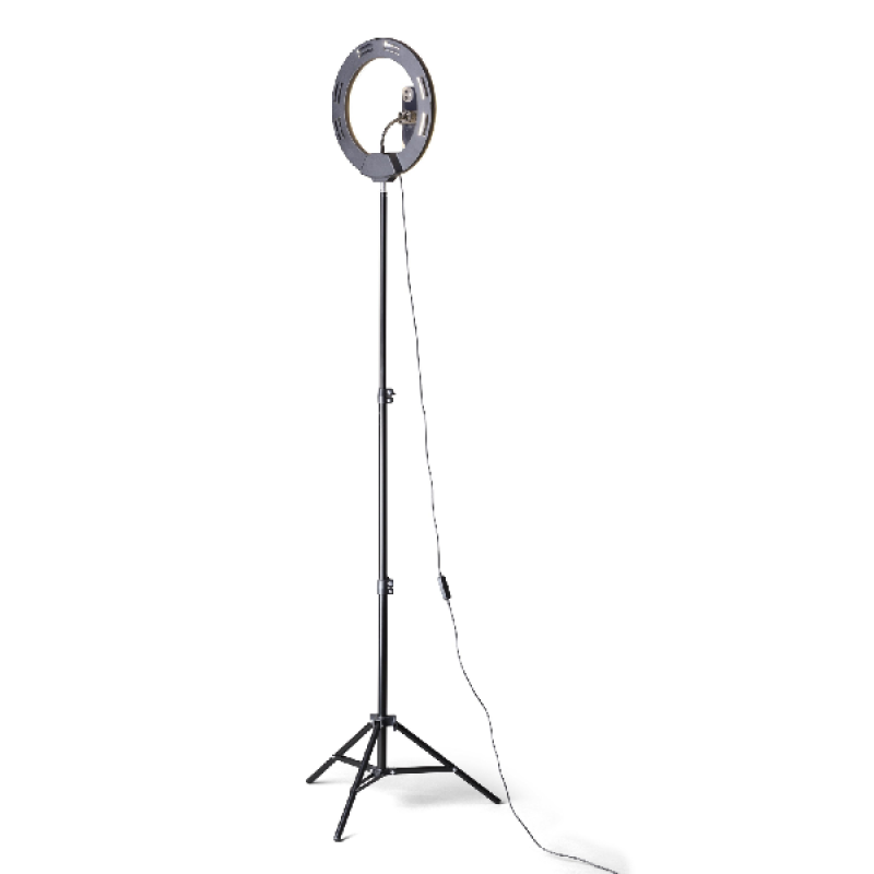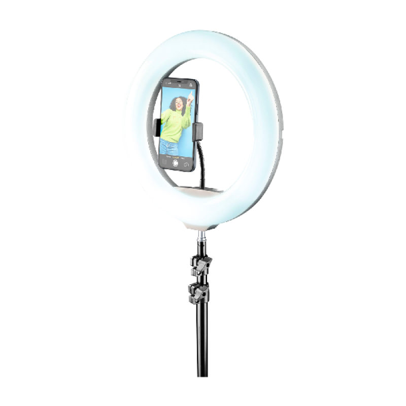 De Cellularline Selfie Ring Pro 13 is een statief met ledring. Het statief kan worden uitgeschoven tot een hoogte van 1,60 meter, wat hem zeer geschikt maakt voor het maken van video's en selfies. De 13-inch-ledring heeft 3 verlichtingsstanden die je activeert met een afstandsbediening. Het statief is verder uitgerust met een universele smartphonehouder die kan worden gedraaid.