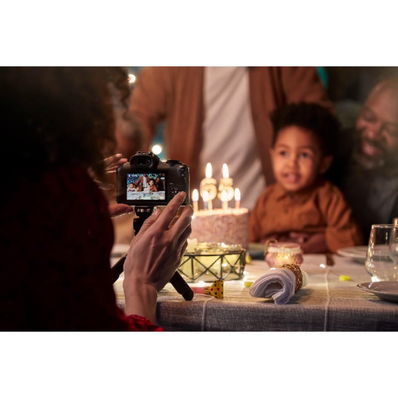 Met intuïtieve bediening en handige instructiemenu’s hoef je geen expert te zijn om met deze EOS-camera foto’s te maken zoals jij het wilt. Met Creative Assist voeg je bovendien gemakkelijk een creatief sausje toe aan je beeldmateriaal. Deel je bijzondere familiemomenten of vakantiekiekjes meteen met vrienden en familie door de camera te koppelen met je smartphone. Via de Camera Connect-app download je foto’s en video’s automatisch op je telefoon. Sla ze dus direct op in de cloud of post ze op je socials. Tijd voor een groepsfoto? Op afstand fotograferen via je telefoon is heel eenvoudig dankzij Bluetooth- en wifi-connectiviteit.