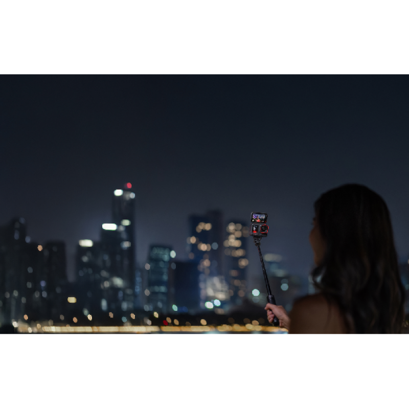 De Insta360 Ace Pro 2-actioncam in zwarte uitvoering beschikt over een hoogwaardige camera en een heleboel innovatieve functies, waarmee je prachtige foto’s en video’s maakt. Met een druk op de knop neem je foto’s van 50 megapixel en film je jouw avonturen in prachtige 8K-resolutie. Al het beeldmateriaal bewaar je op een apart verkrijgbare microSD-kaart, zodat je er achteraf van kunt blijven genieten. Dankzij de krachtige lithium-ionbatterij met een capaciteit van 1.800 mAh leg je tot 180 minuten ononderbroken beeldmateriaal vast. Bij deze bundel ontvang je een extra batterij, zodat je in totaal maar liefst 360 minuten lang filmt. Met de meegeleverde USB-C-kabel is de batterij in slechts 47 minuten weer volledig opgeladen. Sterker nog: dankzij de snellaadfunctie in hij in slechts 18 minuten zelfs al voor 80 % opgeladen. Zijn stevige behuizing kan tegen een stootje en is waterdicht tot 12 meter diep. Je neemt deze actioncam dus overal met je mee op avontuur. Als kers op de taart is het 2.5-inch-touchscreen te draaien, zodat je ook heel eenvoudig selfies en volgs maakt.