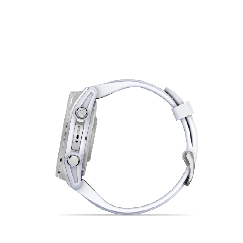 De Garmin fēnix 8 in wit combineert een robuust design met geavanceerde prestaties. Het 1,3-inch (3,30 cm) amoled-scherm biedt levendige kleuren en uitstekende leesbaarheid, zelfs in fel zonlicht. Dankzij de omgevingslichtsensor past het scherm zich automatisch aan voor optimaal zicht, zowel overdag als ’s nachts. De Titanium horlogekast van 43 millimeter en de met glasvezel versterkte polymeerbehuizing maken het horloge bestand tegen schokken, kou en warmte. Met een waterdichtheid tot 10 ATM is het geschikt voor zwemmen of duiken. De siliconen horlogeband biedt comfort, terwijl de batterij tot 10 dagen meegaat in smartwatch-modus.