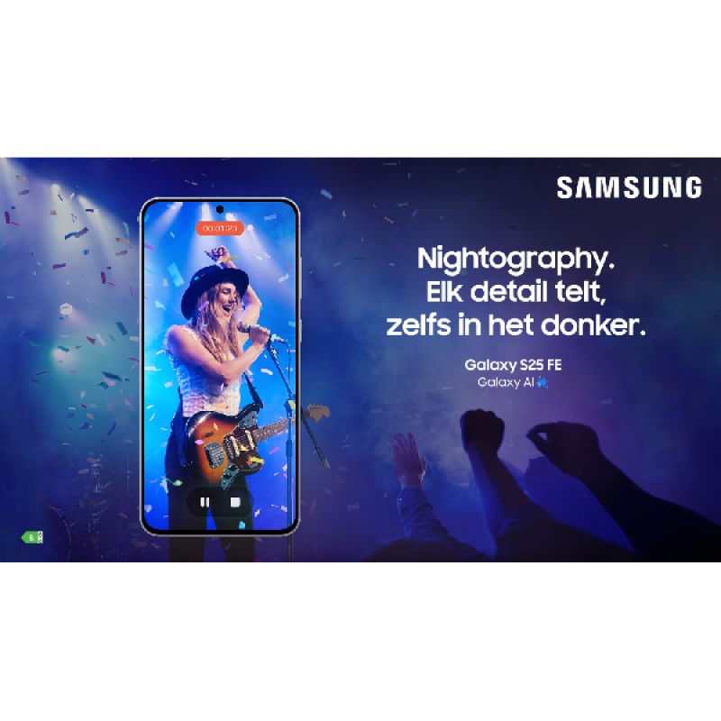 Onder de motorkap van de Galaxy S25 FE 5G bevindt zich de Exynos 2400-processor, die zorgt voor snelle en efficiënte prestaties bij dagelijkse taken en veeleisende apps. Met 8 GB RAM kun je soepel multitasken zonder vertragingen. De 128 GB interne opslag biedt voldoende ruimte voor al je foto's, video's, apps en documenten. Hoewel het toestel geen ondersteuning biedt voor microSD-kaarten, is de beschikbare opslagcapaciteit ruim voldoende voor de meeste gebruikers. Daarnaast ondersteunt het toestel 5G-connectiviteit, waardoor je profiteert van razendsnelle downloads en soepele streaming, zelfs onderweg.