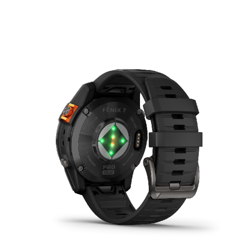 De fenix 7 Pro Solar Edition is uitgerust met een ingebouwde led-zaklamp met variabele lichtintensiteit en een rood veiligheidslicht, wat extra zichtbaarheid biedt tijdens trainingen in het donker. De ECG-app registreert de elektrische signalen van je hartslag en kan tekenen van atriumfibrilleren (AFib) detecteren. Daarnaast zorgt de SATIQ-technologie in combinatie met multi-band GPS voor nauwkeurige locatiebepaling, zelfs in uitdagende omgevingen. Tot slot voldoet deze smartwatch aan militaire normen voor temperatuur-, schok- en waterbestendigheid, waardoor hij geschikt is voor diverse outdoor activiteiten.