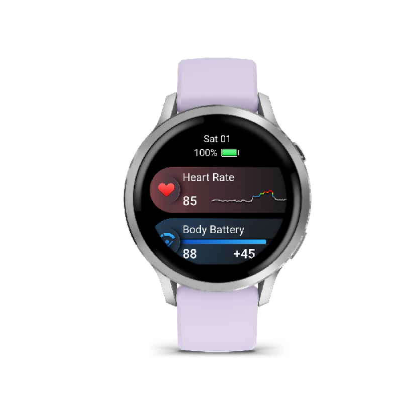 De smartwatch Venu 4 (41mm) van Garmin in grijs met silver + blauwpaars is een stijlvolle en veelzijdige smartwatch die je helpt om actief te blijven en je dagelijkse routines bij te houden. Het 1,2 inch (3,04cm) kleurenscherm met touch-display en resolutie van 390 x 390 pixels geeft meldingen, stappen, hartslag, slaap, stressniveau en calorieverbruik overzichtelijk weer. De 41 mm horlogebehuizing zorgt voor een comfortabele pasvorm voor de meeste polsen. Met Bluetooth 5.5, NFC en wifi kun je eenvoudig verbinden met Android, iOS en iPadOS, en via Garmin Connect volg je al je voortgang. De Venu 4 ondersteunt meer dan 20 sporten, van hardlopen en fietsen tot zwemmen en yoga, en heeft handige functies zoals Garmin Pay en een verwisselbare armband. Dankzij IP5 ATM waterdichtheid en een batterijduur van 10 dagen hoef je je geen zorgen te maken tijdens dagelijks gebruik.