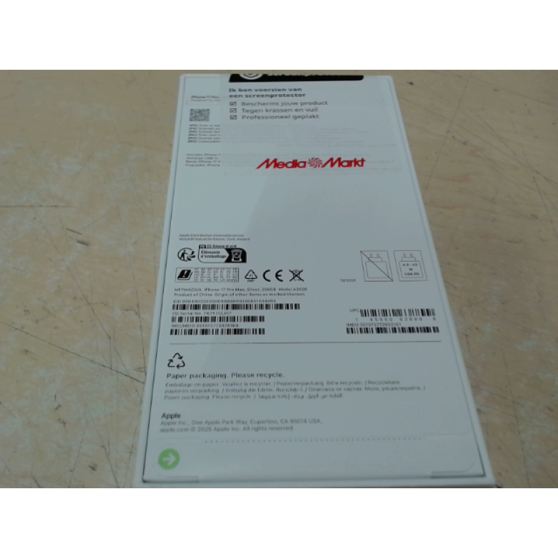 Het unibodydesign maakt een langere batterijduur mogelijk, waarmee je tot 37 uur lang video afspeelt. En binnen 20 minuten is de batterij weer tot 50% opgeladen. Tot slot is de iPhone 17 Pro Max gemaakt voor Apple Intelligence en biedt het een persoonlijke ervaring vol power: je schrijft, laat zien wie je bent en je krijgt alles moeiteloos voor elkaar