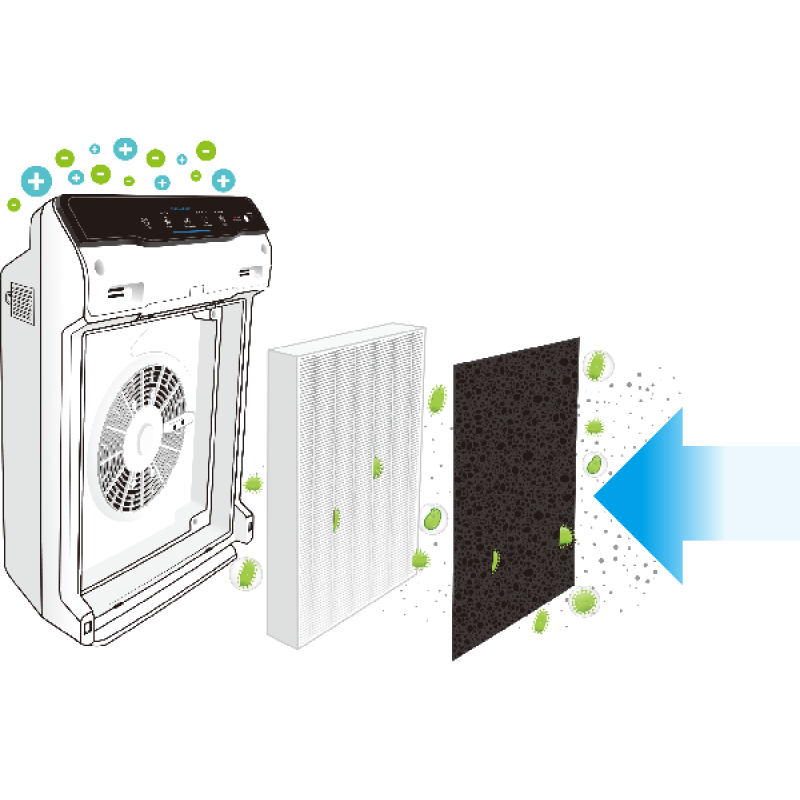Dankzij het filtersysteem met 4 fasen wordt de lucht binnenshuis merkbaar schoner. Het eerste filter van fijne mesh houdt huisdierharen en de grotere stofdeeltjes tegen, zodat de andere filters langer meegaan. Dit filter is tevens wasbaar. Het koolstoffilter erachter houdt organische deeltjes tegen van bijvoorbeeld huisdieren of sigarettenrook. Daarachter zit het HEPA-filter, dat 99,97% van alle stofdeeltjes verwijdert, waaronder fijnstof, allergenen en pollen. De Plasmawave-technologie van WINIX creëert tot slot speciale moleculen die op een veilige manier virussen, bacteriën en gassen verminderen. Bovendien is er een nieuw setje filters inbegrepen bij dit product.