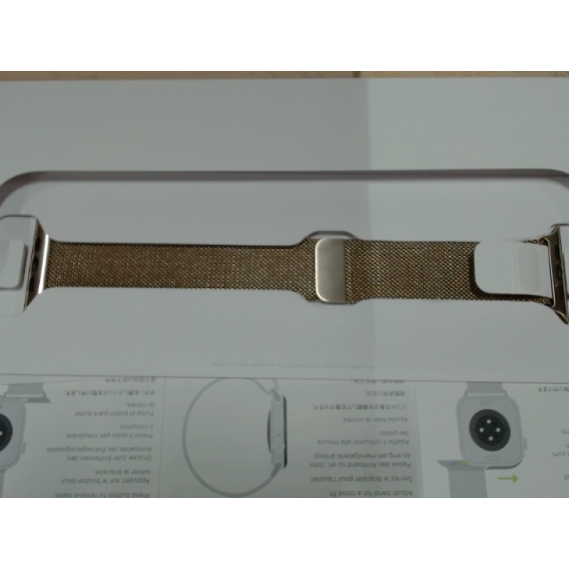 Deze Milanese Loop-armband van Apple in de kleur Gold is duurzaam en comfortabel om te dragen. Hij laat je Apple Watch nog beter tot zijn recht komen om je pols, zodat je je stijl kunt aanpassen aan formelere gelegenheden. Hij is gemaakt van roestvrij staal en is soepel en compatibel met Watches van 44 tot 49 mm.