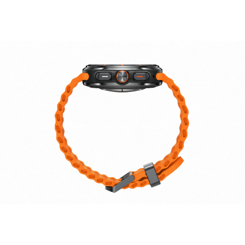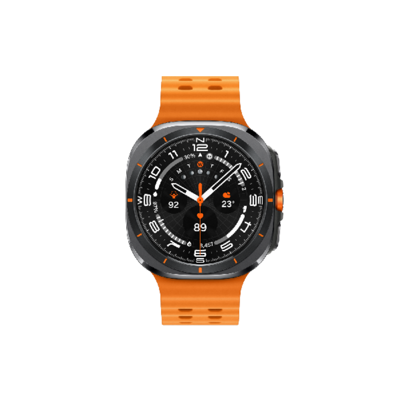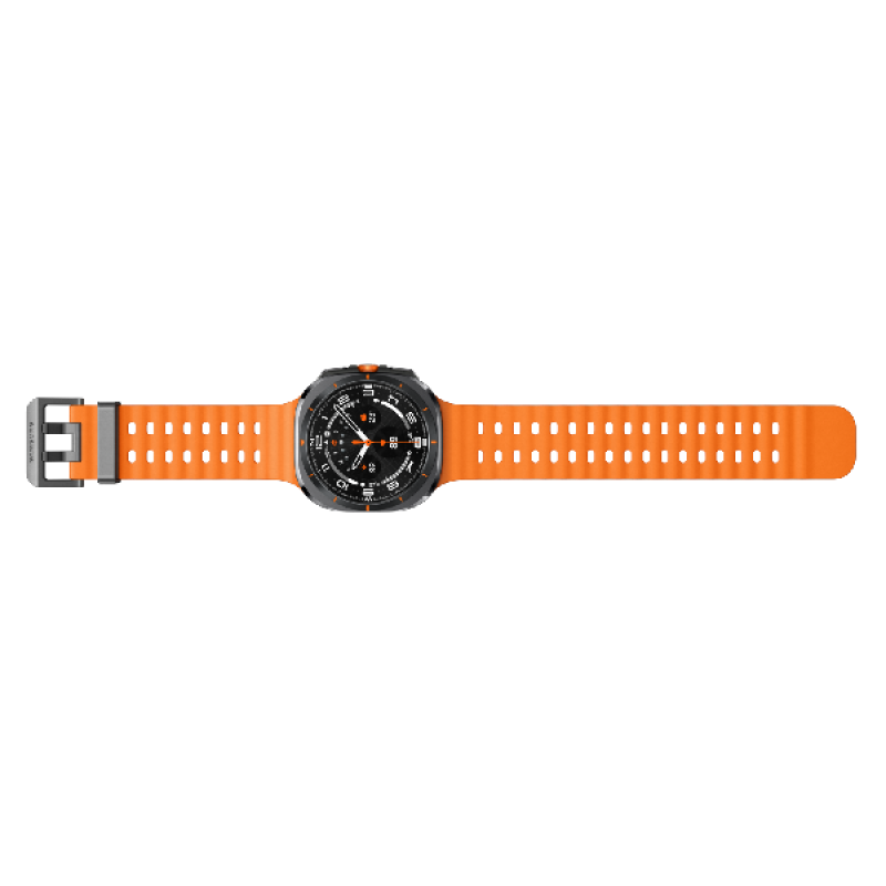 De Galaxy Watch Ultra 47mm LTE in Titanium Gray combineert een strak design met robuuste materialen. De titanium behuizing en het saffierglas zorgen voor een hoge duurzaamheid en weerstand tegen krassen. Met een kastgrootte van 47 mm en een gewicht van 60,5 gram biedt deze smartwatch een stevige, maar comfortabele pasvorm voor dagelijks gebruik. Het oranje siliconen bandje is verwisselbaar, zodat je het horloge kunt aanpassen aan je persoonlijke stijl. Daarnaast is de smartwatch waterbestendig tot 10 ATM en heeft hij een IP68-classificatie, wat betekent dat hij bestand is tegen stof en water, ideaal voor diverse buitenactiviteiten.