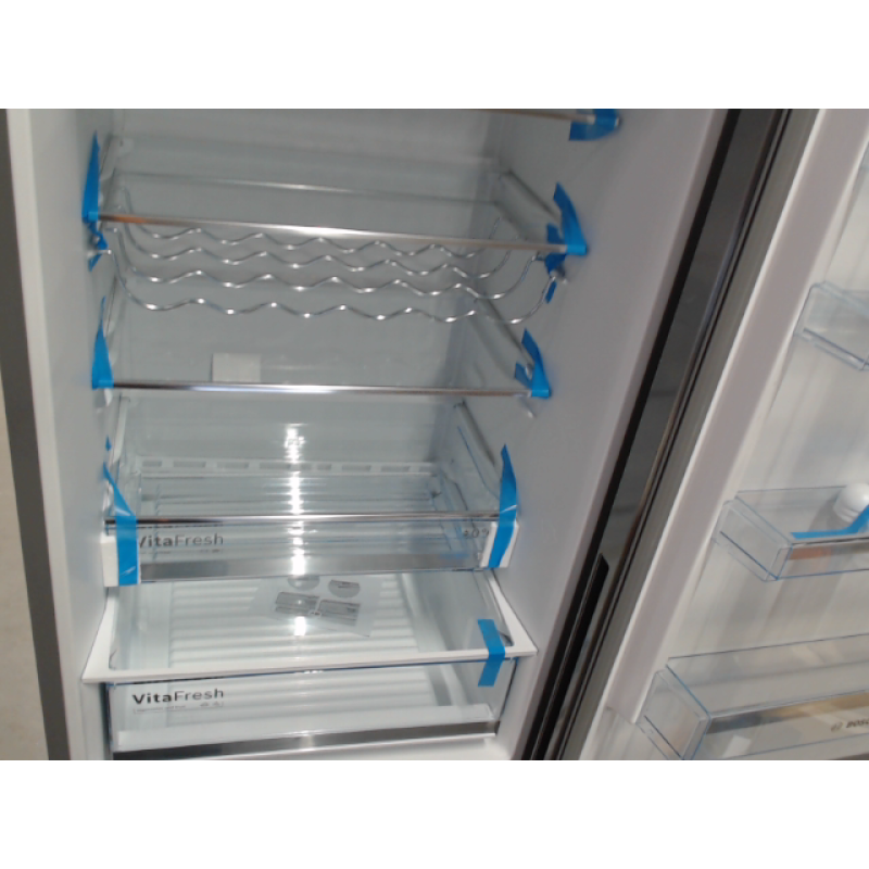 De Bosch KGE49AICA is maar liefst 70 centimeter breed en heeft een riante inhoud van 419 liter. Daarmee is deze koelvriescombinatie 10 centimeter breder dan reguliere koelkasten en biedt hij genoeg ruimte voor al jouw koelwaren. Je kunt jouw boodschappen bijvoorbeeld makkelijk kwijt op 1 van de 5 plateaus in de koelkast, waarvan 2 in hoogte verstelbaar zijn en 4 uitschuifbaar. Flessen blijven stevig liggen op het flessenrooster en grote diepvrieswaren kun je kwijt in de grote BigBox-lade. De koelkast beschikt bovendien over handige functies. Het VitaFresh-vershoudsysteem bijvoorbeeld, streeft een extra lange houdbaarheid van voedsel na. Zo heeft de onderste lade exact de juiste luchtvochtigheid, waardoor de versheid, smaak en voedingswaarden van groente en fruit langer behouden blijft. De bovenste VitaFresh-lade is een 0 graden-zone, waarin je worst, kaas, vlees en vis goed bewaart. Het vriesgedeelte van de Bosch KGE49AICA heeft ook genoeg functionele eigenschappen. Zo hoef jij deze niet alleen minder vaak te ontdooien dankzij LowFrost, dat de vorming van ijs vermindert, maar beschikt hij ook over automatisch SuperVriezen. Deze functie wordt automatisch geactiveerd als de vriezer temperatuurwijziging detecteert. Nieuwe etenswaren worden dan snel ingevroren en reeds geplaatste producten blijven goed bevroren.