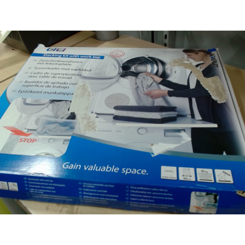 Plaats met dit Scanpart tussenkader is het mogelijk de droger op de wasmachine te plaatsen en bespaar ruimte. Dit stabiele tussenkader monteer je eenvoudig zonder gereedschap en is geschikt voor alle apparaten met een breedte van 60 cm, zelfs geschikt voor machines met afgeronde hoeken. Was tot 20 kg kan probleemloos op het MDF-werkblad gesorteerd en opgevouwen worden.