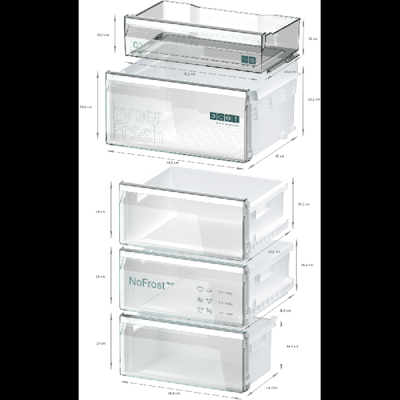 De Siemens KG36NXXBF kan koelen met een hoofdletter K. Dankzij MultiAirflow wordt de koude lucht in deze stijlvolle koel-vriescombinatie gelijkmatig verdeeld en worden de temperatuur en luchtvochtigheid op peil gehouden. Dit voorkomt niet alleen condens, maar houdt je boodschappen ook langer vers. En over vers houden gesproken, dit model heeft 2 hyperFresh-lades: een ruime lade voor groenten en fruit en nog een kleinere 0 °C-lade waarin de optimale omstandigheden voor vlees en vis worden gecreëerd. Nieuwe boodschappen koel je razendsnel met de functie superKoelen, zodat de rest geen kans krijgt om te ontdooien. Over ontdooien hoef jij überhaupt niet in te zitten, want dankzij No Frost doet de KG36NXXDF dat helemaal zelf.