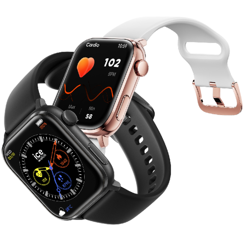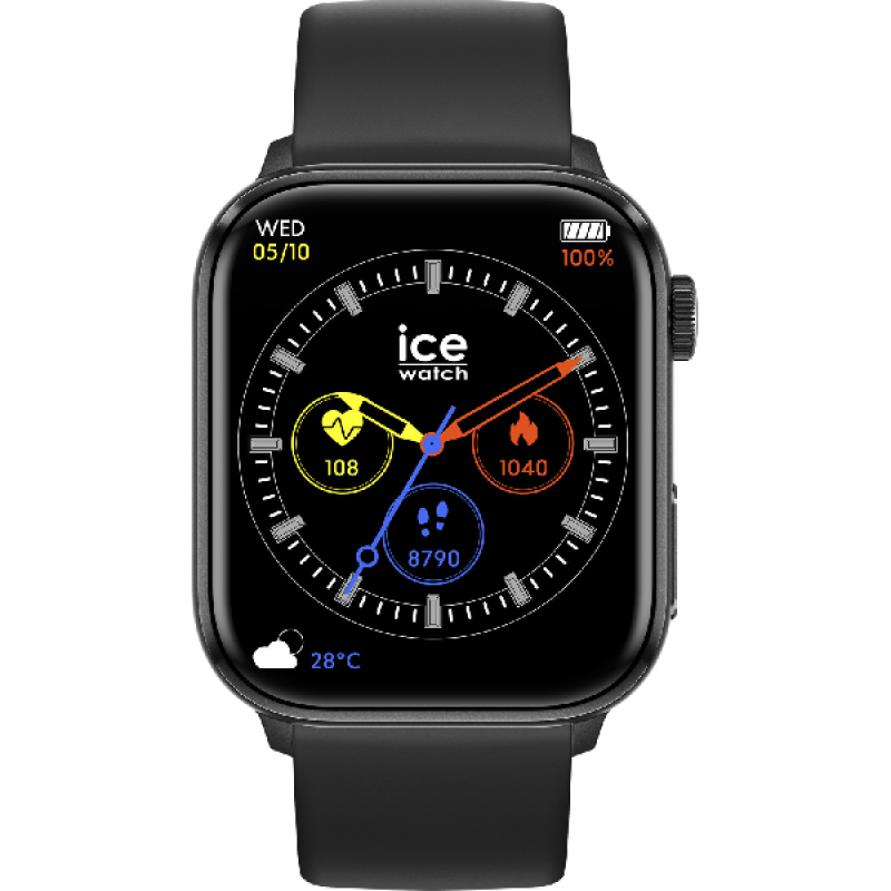 De Ice-Watch Smart 2.0 in zwart met siliconen armband combineert een modern design met veelzijdige functionaliteit. Het ruime 1,96-inch (4,98 cm) amoled-display levert helder beeld en levendige kleuren, goed leesbaar bij elk licht. Via bluetooth 5.1 verbind je de smartwatch eenvoudig met je Android- of iOS-smartphone om oproepen te beheren, berichten te ontvangen en je muziekspeler te bedienen. Dankzij de hartslagsensor, slaaptracking, calorieverbruik en meer dan 100 sportmodi blijf je actief en geïnformeerd. De lichte aluminium behuizing en comfortabele siliconen band zorgen voor draagcomfort bij elke activiteit. Met IP68-waterdichtheid is het horloge beschermd tegen stof en water, en de batterij van 300 mAh biedt tot 5 dagen gebruik per oplaadbeurt.