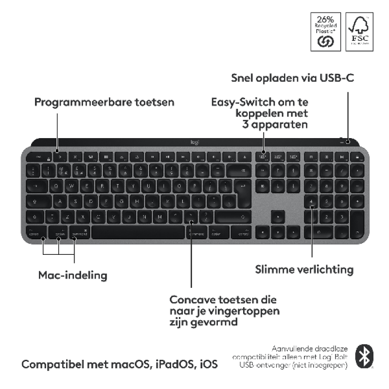 | Vereiste app/service voor gebruik | Logi Options+ |