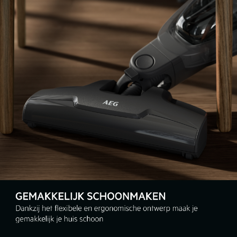 De AEG AS31CB18DB 3000 serie is een ergonomische en wendbare steelstofzuiger. Hierdoor past de stofzuiger gemakkelijk aan de verschillende oppervlakten in jouw huis aan. Door de afneembare kruimelzuiger kun je gemakkelijk moeilijk te bereiken plekken schoonmaken met behulp van de het afstofmondstuk, het lange kierenmondstuk en de flexibele slang.