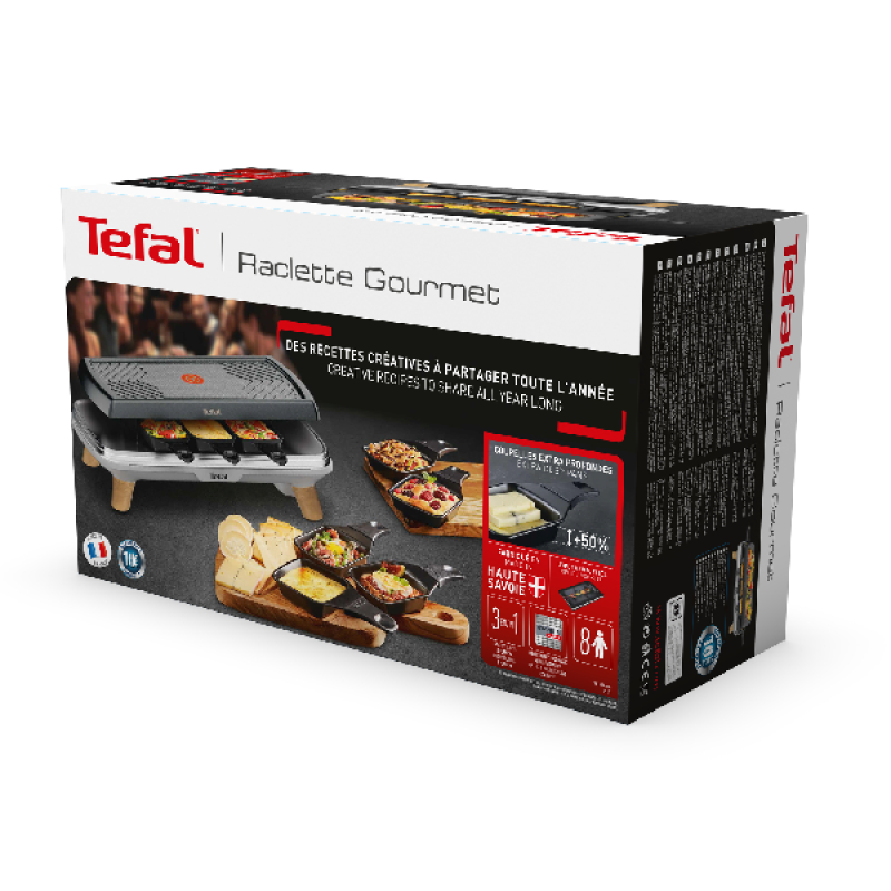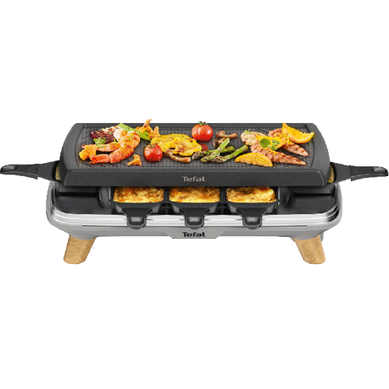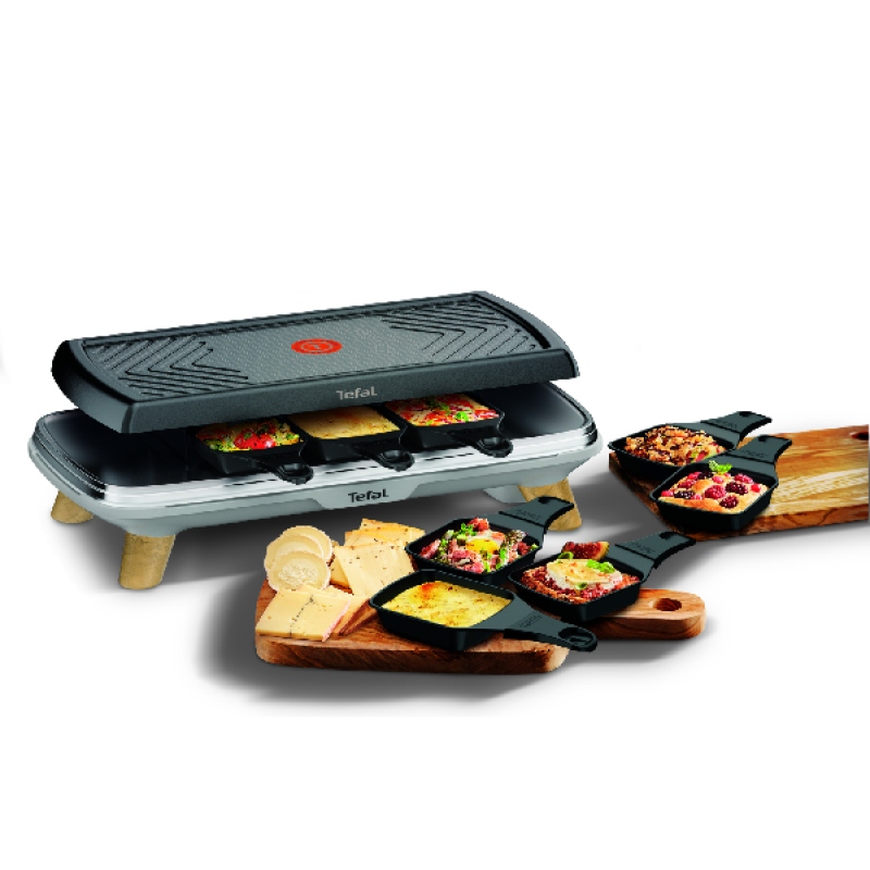 De Tefal Raclette Gourmet 3-in-1 RE610D in in zwart en grijs is ontwikkeld voor gezamenlijke maaltijden waarbij iedereen zijn eigen gerecht bereidt. Het apparaat combineert raclette, grill en plancha in één toestel en heeft houten pootjes, wat zorgt voor een warme en moderne uitstraling. Met afmetingen 39,5 x 14,8 x 27,5 cm (B/H/D) en een gewicht van 3 kilo blijft het toestel compact genoeg voor eenvoudige opslag. De capaciteit voor 8 personen maakt het geschikt voor etentjes met familie of vrienden.