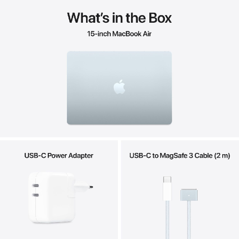 De MacBook Air is voorzien van twee Thunderbolt 4-poorten, een MagSafe-oplaadpoort, een mini jack-aansluiting, en natuurlijk met draadloze verbindingen zoals wifi 6E en Bluetooth 5.3.3. En je kunt er twee externe displays op aansluiten.
