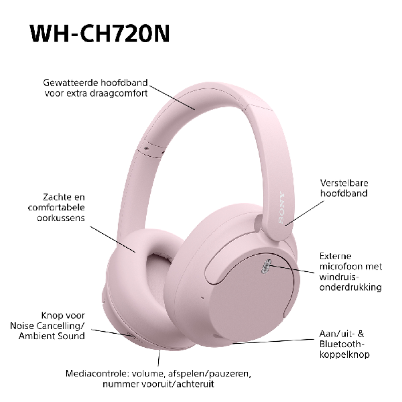 Luister als vanouds naar muziek met de Sony WH-CH520. De Digital Enhancement Engine (DSEE) herstelt namelijk de harmonie in een levendigheid die verloren gaat bij gewone muziekcompressie. Bovendien heeft de koptelefoon multipoint-verbinding, zodat jij kan werken op je laptop zonder dat je oproepen op je telefoon mist. Overigens kun je meteen handsfree bellen dankzij de ingebouwde microfoon, die jouw stem helder opneemt. Ook is de WH-CH520 ontworpen voor comfort. De koptelefoon is licht, met zachte behuizing en draaibare oorschelpen, zodat hij de hele dag lekker zit. Dat is maar goed ook, want met een accuduur van 50 uur hoef je hem zelden af te zetten.