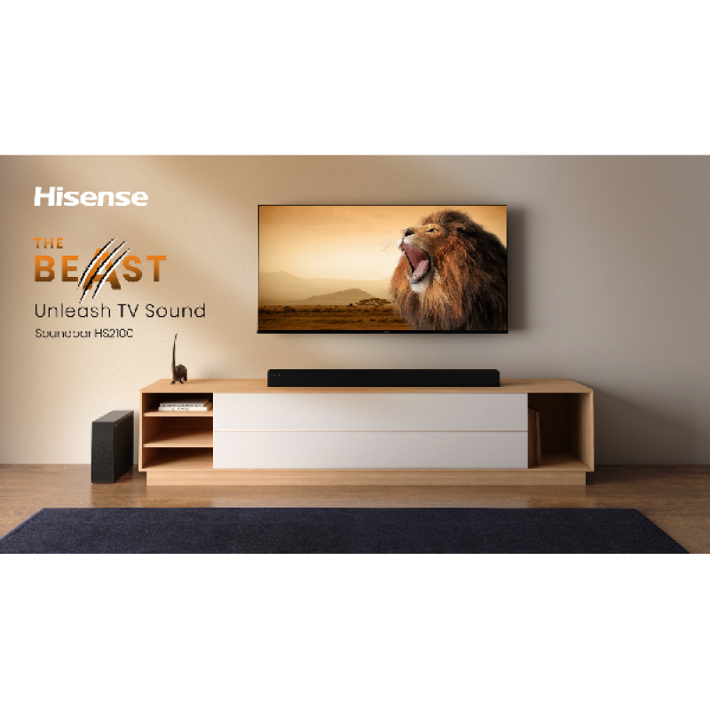 Geef een extra dimensie aan jouw favoriete films of games met de Hisense Soundbar systeem HS2100. Deze stijlvolle soundbar met 2.1-kanaalssysteem heeft een vermogen van 240 W die zorgt ervoor dat je midden in de actie staat. Het moderne zwarte design past bovendien naadloos in je interieur. Dankzij Digital Plus Audio en DTS Virtual:X geniet je van ruimtelijk 3D-geluid. De ultra smalle draadloze subwoofer (120 W) laat je versteld staan van de krachtige bas. De Hisense HS2100 ondersteunt Bluetooth 5.3 (sneller en stabieler), HDMI ARC, AUX, USB en OPTICAL.