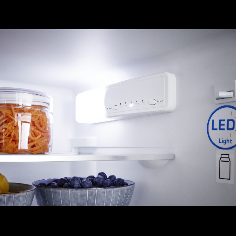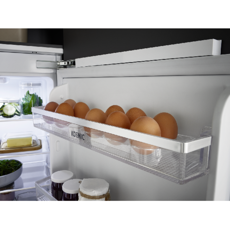 Deze KBR 8811 inbouwtafelmodel koelkast van Koenic past discreet in je inbouwkeuken. Dankzij de praktische, omkeerbare deur integreer je hem moeiteloos. Met een totale capaciteit van 125 liter, 5 stevige glazen leggers en een vershoudlade bewaar je je etenswaren overzichtelijk en vers. In de deur vind je 3 opbergbakken voor flessen, blikjes en kleine potjes. Tot slot is er binnenverlichting voorzien en regel je de temperatuur eenvoudig via de drukknoppen aan de binnenkant.