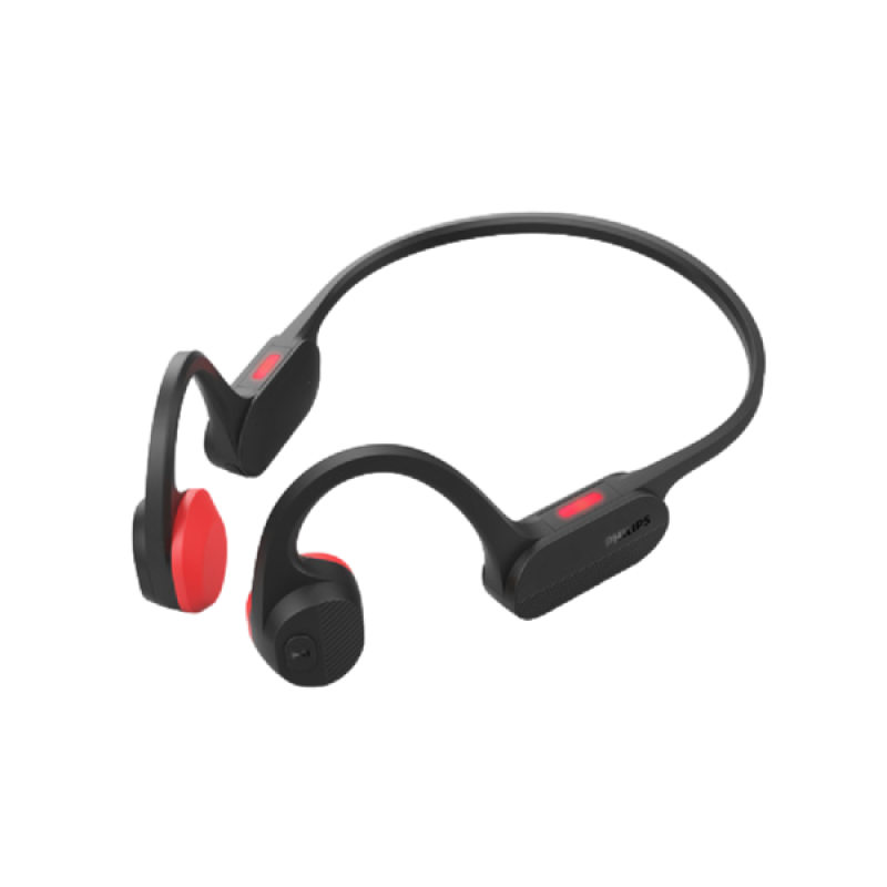 Luister naar je favoriete nummers tijdens het sporten met de Philips TAA5608BK/00. Deze draadloze open-ear-koptelefoon uit de GO-serie heeft een hele comfortabele, stevige pasvorm die zo licht is dat je hem bijna niet voelt zitten. De nekband gaat achter je hoofd langs en haakt over je oren, zodat de koptelefoon niet heen en weer schuift. Hoe intensief jij ook beweegt, de TAA5608 blijft op zijn plek! De oorkussens rusten op je tragus, dat stukje kraakbeen net voor je oor. Ze bedekken je oren dus niet, maar dat beïnvloedt de geluidskwaliteit zeker niet. Deze koptelefoon werkt namelijk met bone conduction. Deze technologie brengt de audio kraakhelder via je botten naar je binnenoor en blijf je je gewoon bewust van je omgeving. Dat is wel zo handig als er verkeer om je heen is. En ook handsfree bellen gaat helder en eenvoudig. De ingebouwde beamforming-microfoons zijn uitgerust met een AI-algoritme dat achtergrondgeluid verwijdert, zodat jij en je gesprekspartner elkaar duidelijk verstaan. Verder zijn ze IPX5-waterbestendig, zodat ze probleemloos tegen zweet en regen kunnen. Ren je graag in het donker? Gebruik dan de geïntegreerde ledlampjes om goed zichtbaar te blijven. Want veiligheid staat voorop. Koppel je smartphone dus snel en eenvoudig via bluetooth, download de Philips Headphones-app voor uitgebreide bedieningsopties en luister dankzij de krachtige batterij tot 6 uur naar al jouw favoriete artiesten, of je nu relaxt of beweegt.