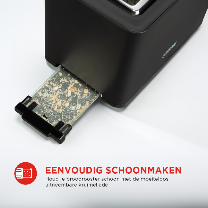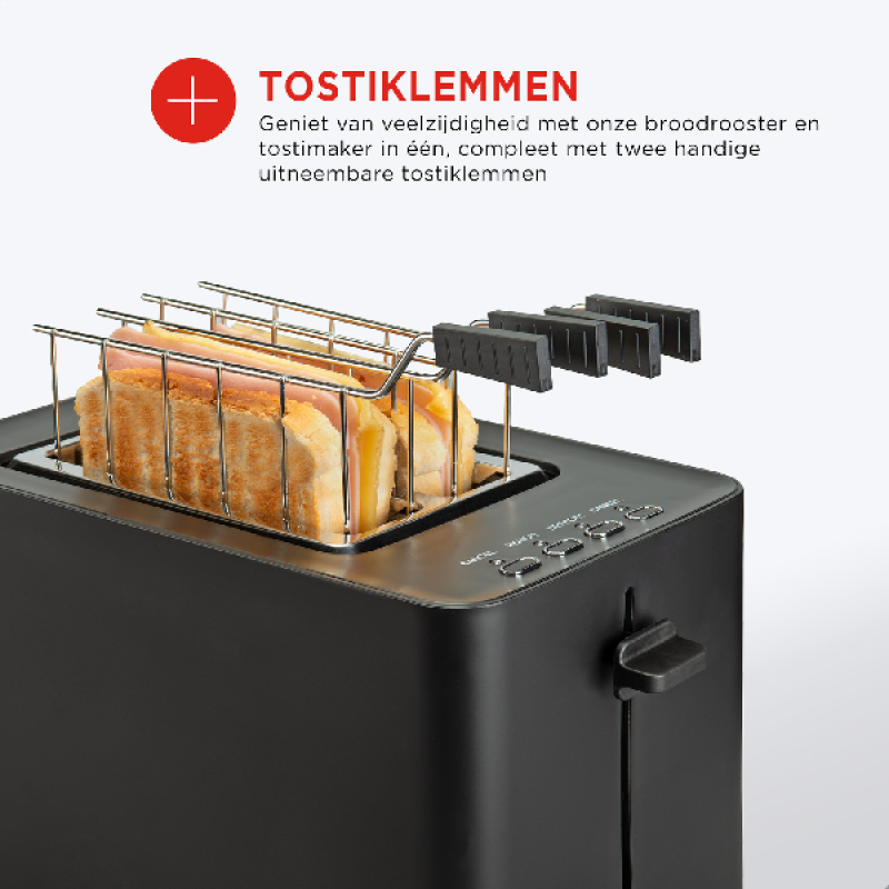 Als je graag je dag begint met geroosterd brood, zit je helemaal goed met de Bourgini Tosti Toaster Broodrooster Zwart. Dankzij de instelbare bruining is je brood altijd getoast op de manier die jij lekker vindt. Ben je vergeten om brood uit de vriezer te halen? Geen probleem: deze handige broodrooster van Bourgini heeft een ontdooifunctie. Zo kun je je prima last-minute nog bedenken dat je toch wel trek hebt in een tosti. Dat lees je goed: dit apparaat wordt ook geleverd met 2 handige tostiklemmen. Scheelt weer een apparaat in de keuken, want je hebt geen tosti-ijzer meer nodig. De keuze is dus aan jou: maximaal 2 boterhammen tegelijk roosteren, of maximaal 2 tosti’s tegelijk maken. Lekker veelzijdig! Verder heeft de broodrooster een opwarmfunctie, een stopknop en een veiligheidsschakelaar voor het geval er brood vast komt te zitten. En zelfs het schoonmaken is hartstikke eenvoudig dankzij de verwijderbare kruimellade. Omdat je deze uit het apparaat kunt halen, kiep je ‘m makkelijk leeg boven de prullenbak. Zo geniet jij keer op keer moeiteloos van heerlijk geroosterd brood of smakelijke tosti’s.