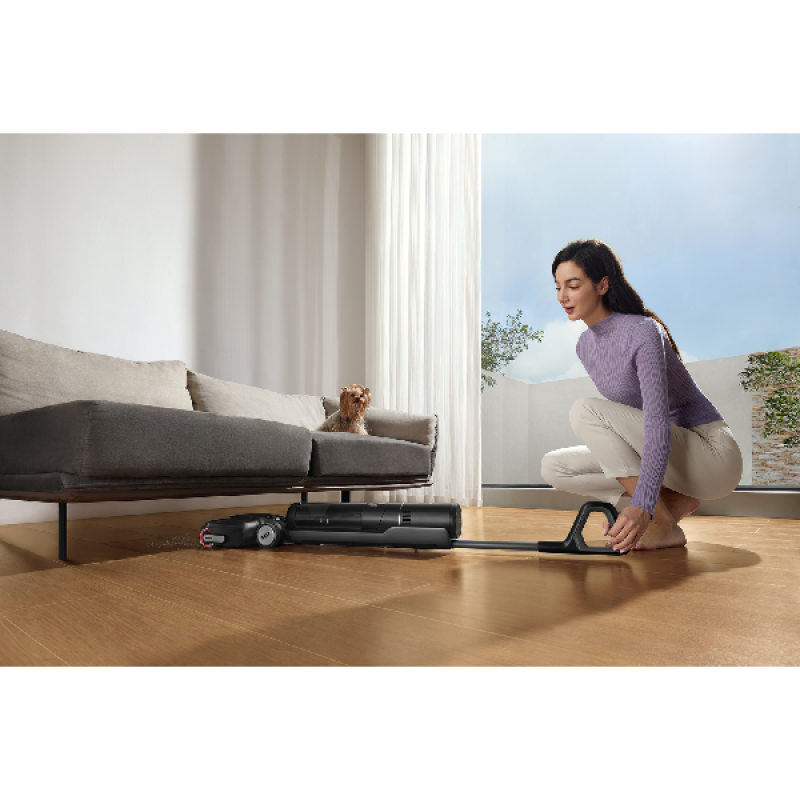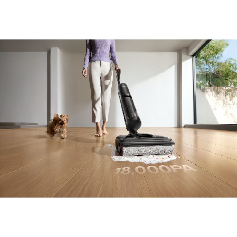 De Dreame H12 Pro Flex Lite Wet & Dry is een veelzijdige nat- en droogstofzuiger die je schoonmaakroutine aanzienlijk vereenvoudigt. Hij heeft een strak zwart ontwerp en afmetingen van 27,5 x 116 x 27,9 cm (B/H/D). Met een gewicht van 5,1 kilo combineert het apparaat een solide bouw met goede wendbaarheid. Dankzij de 180° volledig platte stand met een hoogte van 14 cm bereik je eenvoudig plekken onder meubels. De ergonomische handgreep met geïntegreerde bediening, een LED-display en spraakmeldingen zorgt voor een comfortabele gebruikservaring. Het zakloze ontwerp maakt het legen eenvoudig en hygiënisch.
