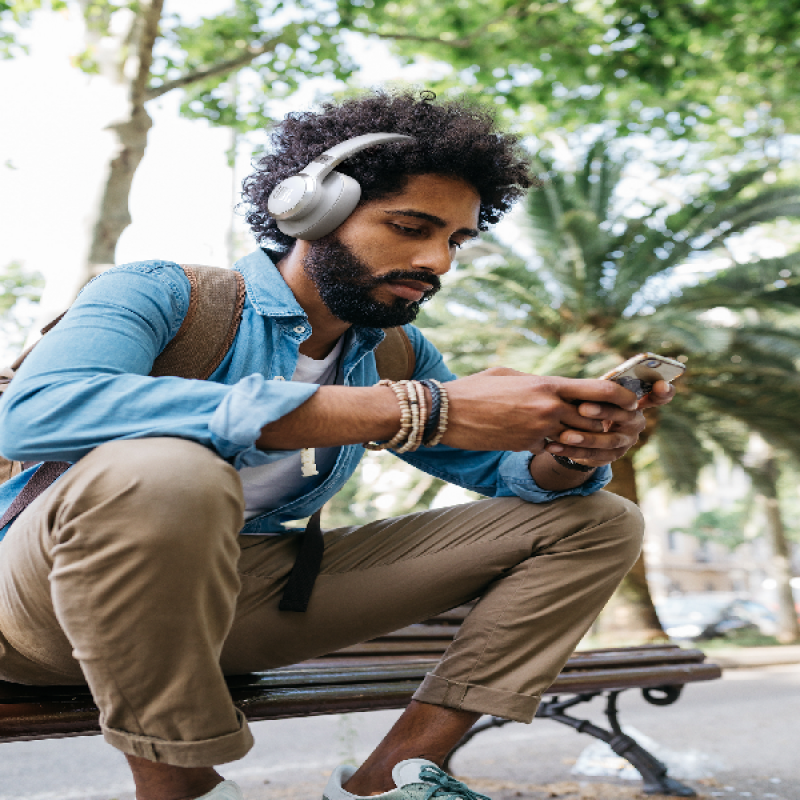 Gesprekken voeren terwijl je de koptelefoon draagt? Geen probleem. Of je nu wordt gebeld of iemand je op straat aanspreekt: je gaat moeiteloos de conversatie aan. Wanneer je een oproep binnenkrijgt, bel jij eenvoudig handsfree. Dankzij 2 microfoons met beamforming ben jij in weer en wind goed te verstaan. Staat er iemand aan je bureau met een vraag, dan hoef je de koptelefoon niet eens af te zetten als deze in de Ambient-modus staat. Zet je hem liever wel af? Dan wordt de audio automatisch gepauzeerd. Wanneer je hem weer opdoet, hervat de muziek ook gelijk. Geen gedoe dus!